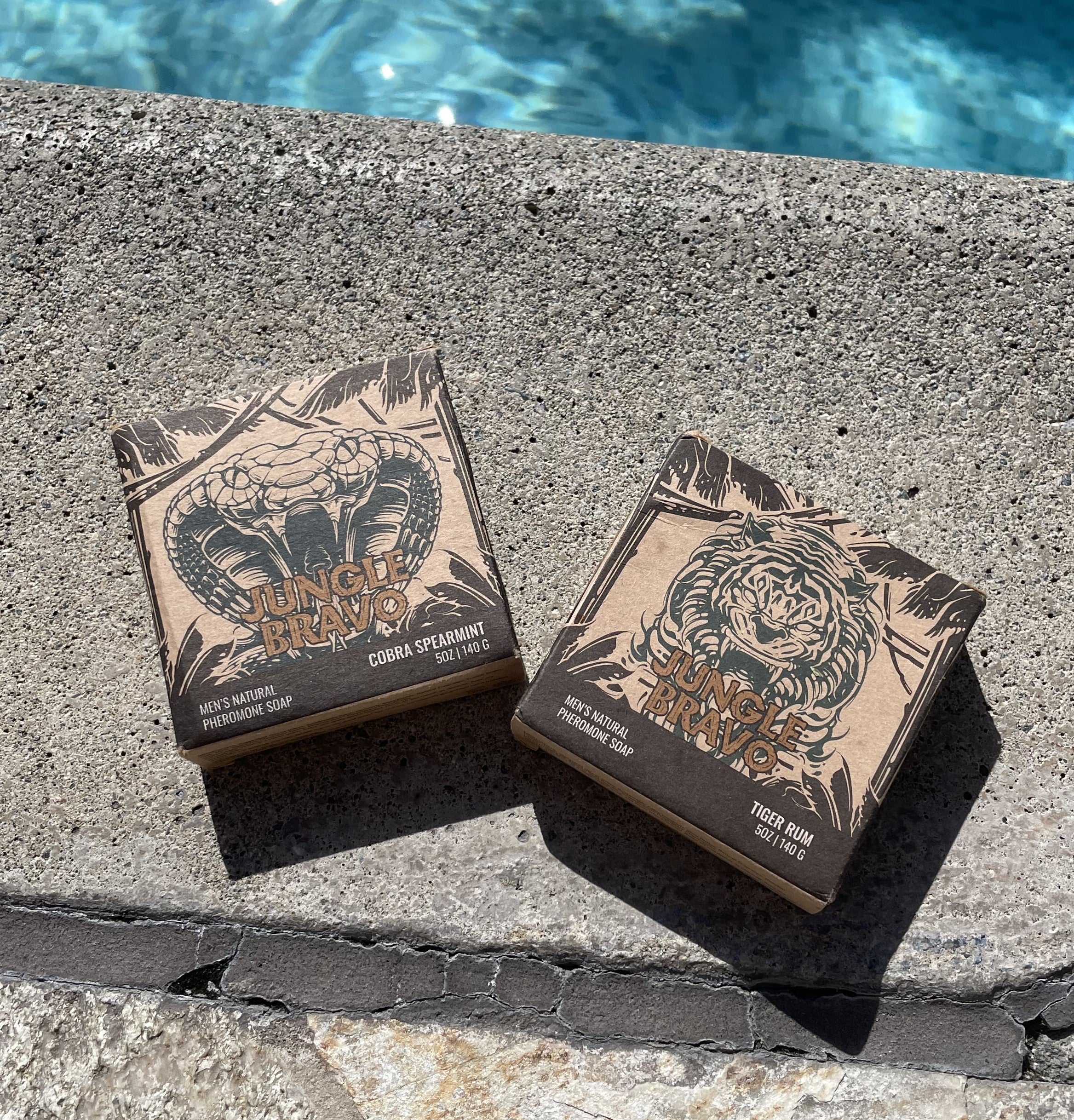 Each Jungle Bravo Alpha Soap bar is made with cold-processed oils, natural clays, and our proprietary AlphaX™ pheromone blend. No synthetic fragrances, no hormone-disrupting chemicals, and nothing that messes with your skin.